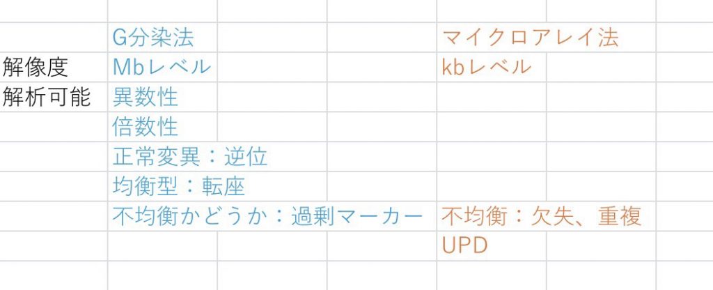 ・5Mbまでの染色体構成を検出できる(それより小さな染色体変化は検出できない)